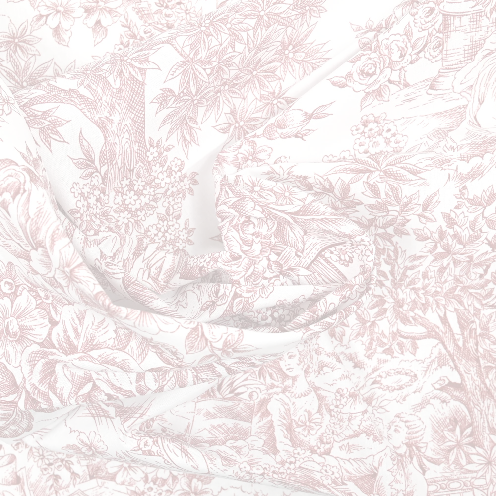 Pour cette collection, nous avons choisi une toile de Jouy aux motifs romantiques.